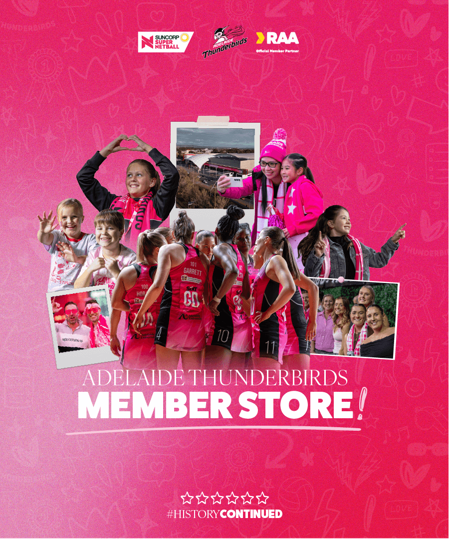 Choose from a range of 2026 merchandise items to build your own fully customisable membership pack. Personalise exclusive member products as well as make purchases from our Adelaide Thunderbirds Membership range.